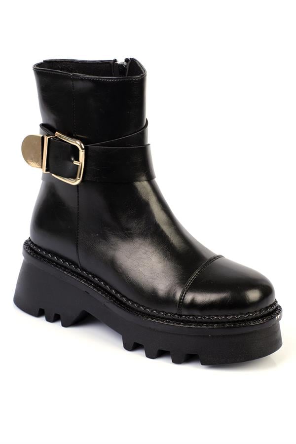 Capone Track Sole Metal Buckled Side-Zippered Women Long Boots